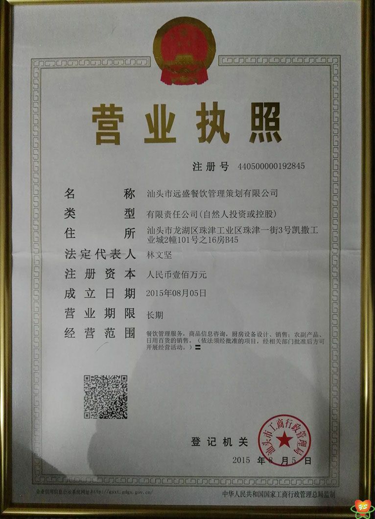 汕頭市遠(yuǎn)盛餐飲管理策劃有限公司營業(yè)執(zhí)照