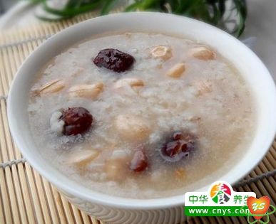 花生和紅棗都有養(yǎng)胃功效,將花生、紅棗和大米放在一起熬制的粥,口味香甜。